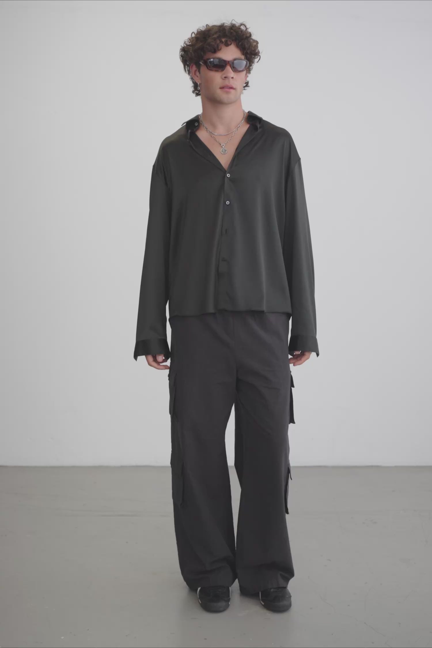 Our Signature Silk Shirt is designed to be versatile, ready for any occasion. Featuring a cropped, wide fit with a lightly scooped hem for volume and comfort.